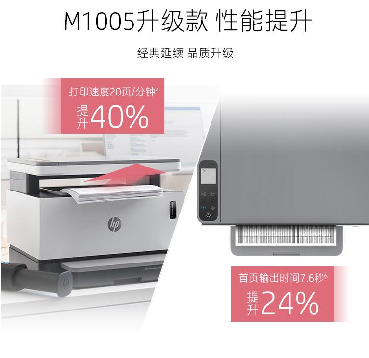HP/惠普 Laser NS 1005W 創(chuàng)系列 智能閃充大粉倉(cāng)一體機(jī) 無線激光多功能 無線打印復(fù)印掃描三合一