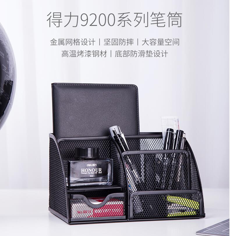 得力9200金屬網格筆筒組合辦公用品桌面收納筆插文具整理盒多功能筆座大容量小清新時尚可愛創(chuàng)意收納網紋網狀